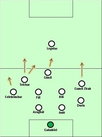 http://img.photobucket.com/albums/v7...6.jpg~original (Expected formation) Last year Dwarves United surprisingly advanced to the knockout stages ahead of an offensively stacked Wilderland squad and a solid Anduin team. They did it in the way of most footballing underdogs, by being very difficult to break down and nicking a few goals on the break. Legolas seemed to be the perfect forward for their team—he passed their strict squad selection qualification (being a Dwarf-friend) and he is a speedy forward who excels in rushing at disorganised defences. However, all they got from their lone forward is a goal in four games, a poor rate of return considering he offers little else to the Dwarven offence: he’s poor at holding the ball up and his crossing ability is useless when the targets are often less than four feet tall. Changes Which is why it’s surprising that their major acquisition during the preseason transfer window, former Wilderland attacking midfielder Galadriel, is being fielded as a goalkeeper. This is especially bewildering considering their former keeper Bombur boasted a save rate that was tied for seventh best last year. That they would choose an incremental increase in defensive solidity over a two- or even threefold increase in offensive ability is perhaps deeply rooted in Dwarven philosophy. It is certainly a decision many football analysts struggle to understand. Defence Ahead of Galadriel is a solid back four: Azaghâl and Aulë are the centre-backs, with the Dwarf from Belegost doing the tackling and interceptions while the Vala stayed behind to make clearances and win headers. On the flanks are the attacking left-back Celebrimbor and the more defensive-minded right-back Durin. Midfield In front of them are Dwarves United’s other preseason signings, midfielders Fíli and Kíli. We disagree with AKM when they said that their ‘only merit is that they will play for the team with half the price.’ The sons of Dís are an improvement over Thror and Thorin; while the elder two are more combative tacklers (unfortunately leading to yellow cards), the latter are quicker and more capable of occupying space and cutting off passing options for opposing attackers. They are also excellent in short one-touch passing, as they demonstrated in their friendly vs Rohan—their quick switch of play from one flank to the other led to Celebrimbor setting up Gimli to create Telchar’s winner. Attack Just behind Legolas are the more attacking trio of midfielders. Gamil Zirak and Telchar start out wide and dribble past opponents, while Gimli drifts into space to create overloads on either wing. One of the trio will receive a short pass from Fíli and Kíli while the others dash forward to support Legolas. Last year, Celebrimbor often arrived late in the box when defences have paid them too much attention to the four attackers, and his Fëanorean ball skills were enough to give him space to shoot. But, during the friendlies, teams have begun to man-mark him, even double-marking him when he crosses the halfway line (as in the game against Rohan). His decision-making must be spot on so he can exploit potential openings, as he did vs the Rohirrim when, as Háma and Snowmane double-teamed him, he passed to the open Gimli who immediately assisted a cutting Telchar. Quick Guide CAPTAIN: Aulë FORMATION: 4-5-1 PLAYING STYLE: defensive, counterattacking STRENGTH: Defensively solid. WEAKNESS: Lack of goalscoring. KEY PLAYER: Celebrimbor QUESTION: Can they get goals out of Legolas? __________ Gondolin http://img.photobucket.com/albums/v7...4.jpg~original (Expected formation) Last year Gondolin scored seven goals in four tournament games, with forwards Gothmog and Maeglin accounting for all but one goal. Their offence was ranked ninth in the tournament, putting up 16.5 shots per game (better than even AC Beleriand’s 16.14). More than half of the goals they scored, however, came against Arnor. They scored only once against some of the tournament’s top defences (one vs second-ranked Eriador and none vs third-ranked AC Beleriand). Changes In the offseason Gothmog transferred to Anfauglith; in his place as Gondolin’s line leader was Tuor from the Havens. Pengolodh was released and Penlod from FC Valinor was brought in to strengthen the defence. Also from FC Valinor was wide midfielder Idril, brought in to replace a retiring Meleth. Having two legitimate wide players means that Gondolin would field a normal 4-4-2 instead of their asymmetrical 4-2-2-2. Midfield There is a problem, though: Salgant and Duilin, Gondolin’s two central midfielders, are incompatible with the Hidden Kingdom’s defensive style. In fact, they just don’t fit well together. A traditional central midfield duo consists of one disciplined player with a more forward-thinking one (either a passer or a runner). But Salgant drifts around the pitch too much to play the more disciplined role. Duilin isn’t suited for it, either; he is an energetic box-to-box player, excellent at moving forward to link midfield and attack, supplying passes to the forwards, and making late runs to the penalty box against distracted defenders, but he is poor at tackling and even poorer at defensive positioning. As a result, Gondolin, even with their two banks of four, look surprisingly open to attacks through the middle. During their friendly against Hithlum, Hador found a surprising amount of space to run in and finish Túrin’s chipped ball past the defence—Salgant had been chasing Túrin around whenever the forward dropped deep, while Duilin was dragged away by Morwen’s movement to the flanks. Attack Out wide beside Duilin and Salgant are Idril on the right and Elemmakil on the left. They are both better on attack than defence, which compounds the problem of protecting their defence. Elemmakil is a traditional winger, hugging the touchline before delivering crosses to the forwards, while Idril drifted inside to act as a third central midfi
