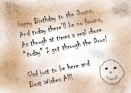 He stooped low to pick up a few of the note cards - curiosity always got him. What was all of this? Mixed within the comments like "I can't get into the Downs!" and "Help!" were others - long-winded tomes regarding what some members did while the same members cooled their heels at the closed Door and other short notes like "Come over to my camp until the Door gets fixed." There were even a few birthday greetings in the pile. Seems that some of those already here at the birthday party used the cards to well wish the Downs on its birthday, while others complained about the Door. Hmm...what to do, what to do. On the ground there were a few blank note cards about dropped carelessly. alatar took one and thought that it would make a fine birthday card...and yet the urge arose to mention, backhandedly of course, the issues with the Barrow-Downs Door. It would take but a minute, and using the pen chained to the wall next to the comment box, he began to scratch away. |