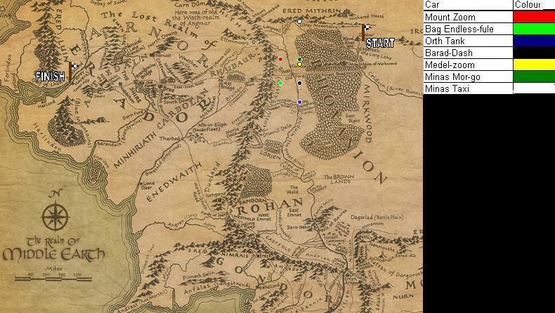 HERE WE GO!I just re-read Formendacil's post on the Game and realised that Minas Taxi was moving North West. ![]() So, the first challenge will begin in earnist! Lets look at the locations. MOUNT ZOOM = Mirk Wood Bag-Endless-fule = Mirk Wood Orth-Tank = Near the Mountains of Mirk Wood Barad-Dash = Near the Mountains of Mirk Wood Medel-zoom = Near the Mountains of Mirk Wood Minas Mor-go = Mirk Wood Minas Taxi = Near the Grey Mountains.The First challenge will be set soon... Well, as soon as I think of one.