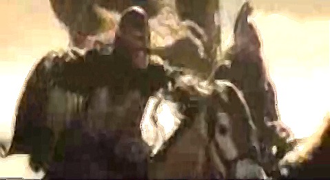 Now I see what you mean, as I saw angry riders with swords, but not axes. While watching the scene again, I noticed how some of the spears wiggle when the Riders ride.