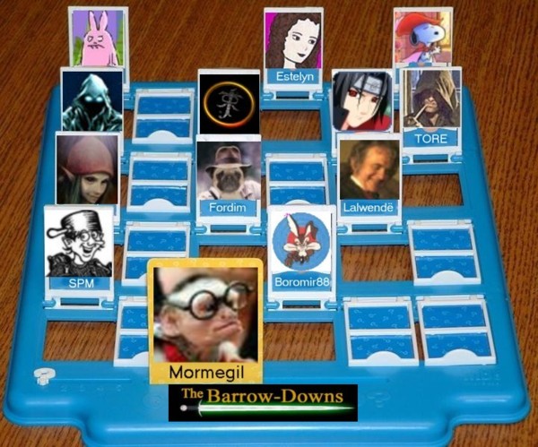 *** NEW FROM MOULDY BARROW GAMES!*** Barrow downs Guess Who? The players each select one of the Barrow Downs characters featured on the board and then take it in turns to ask questions of their opponent in an effort to narrow down his or her selected character. Ask questions such as: Is your Downer female? Does your Downer wear a hood? Is your Downer an abstract symbol? Does your Downer believe that Eru is God? and the ever popular Does your Downer believe that The Hobbit should be excluded from the Legendarium? Be the first to guess your opponent's Barrow Downer and win! Only $65 from Mouldy Barrow Games. Order now and receive Barrow Downs Top Trumps free!