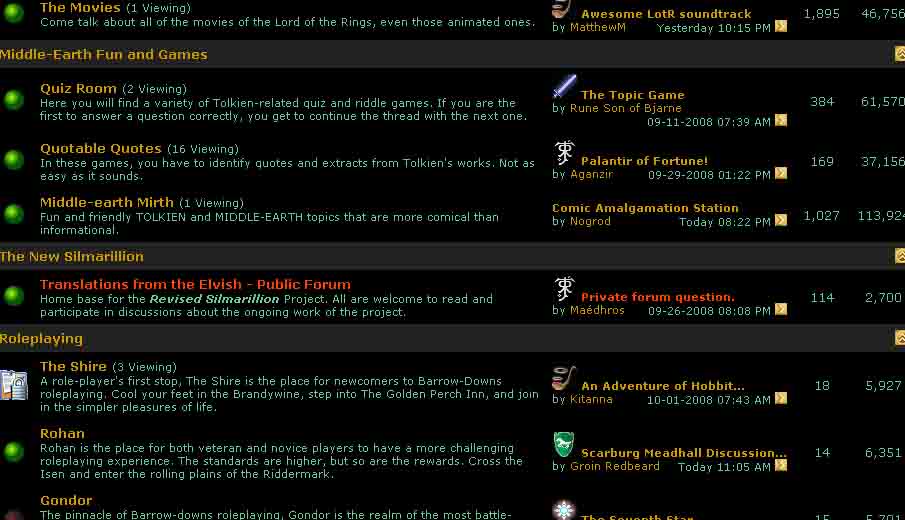 I look where they tell me to but don't see anything labled private memebers forum or anyplace to sign in to the forum. I have the password, (thank you Findegil !) but i have no idea where to use it? Some one please help me find out where to sign into the private members forum???? Findegil says to "scroll down to "The New Silmarillion". You see 2 forums there:"Translations from the Elvish - Public Forum"and "Translations from the Elvish - Private [members only] Forum"" But I only see one "Translations from the Elvish - Public Forum" I am attaching a pic to help show people what i see when i am at this forum. Thanx for anyhelp that anyone can offer! |