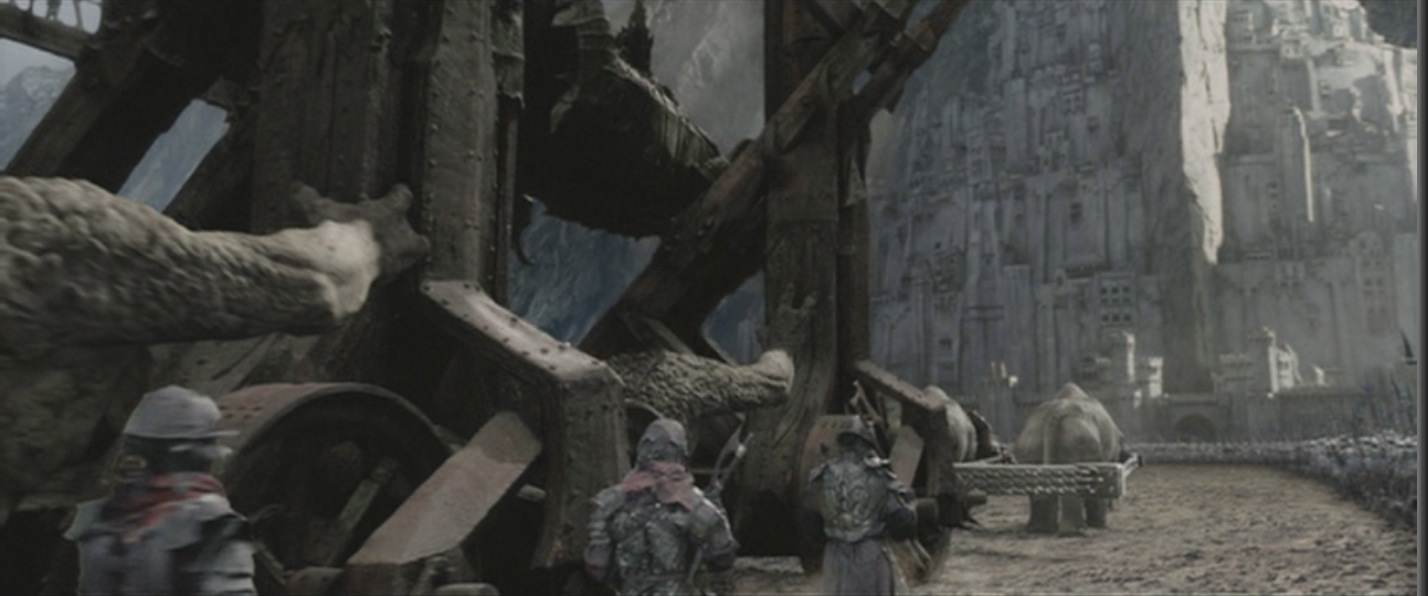 Noticed something this time around that I hadn't seen before, and it's nitpicky (what would you expect? ), but just wanted to get it all down.Grond, the big battering ram used to bludgeon down the gate at Minas Tirith, is too tall. Watch the scene more closely (I used my copy of the EE version of the DVDs; you'll need both). You'll see that Grond is well above the heads of the 'Grond trolls' that push it. Yet when it breaks through the Gate, it's just above. My picture of the Gate shows Grond withdrawn a bit, and so it looks higher than it was when it struck the Gate. I'm guessing that if everything were to scale, the 'Hammer of the Underworld' should have struck the top portion of the Gate - still effective, that - though I could be wrong. Was this just some inconsequential error that allowed me to fill up a most boring day, or was the Gate supposed to be taller, or is this another case or moreMoreMORE PJ wanting Grond to be bigger, taller, faster... It's been a slow day.