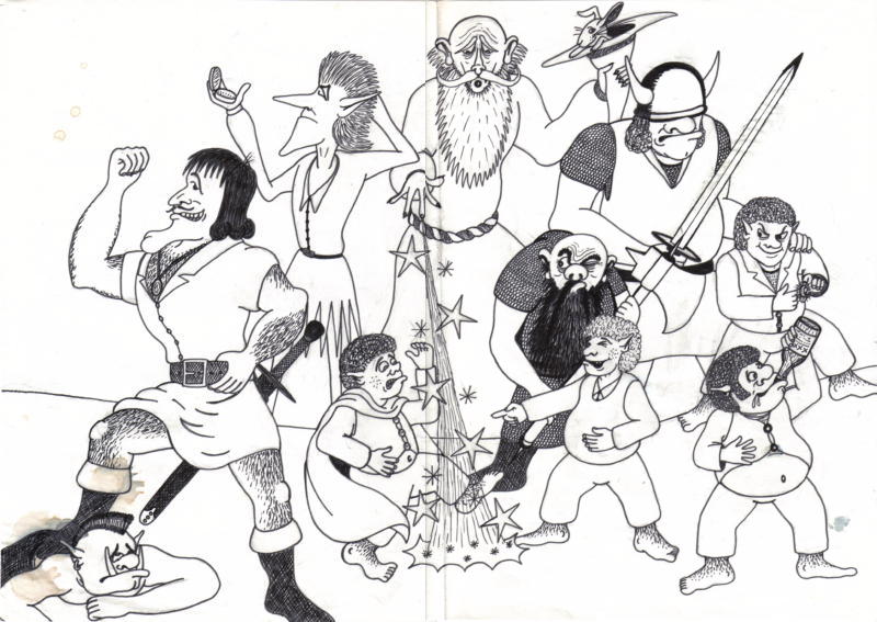 Hah! That's incredibly funny, Sauce. Uber-hairy-chin-man Aragorn, silly wizard Gandy, piggy boozer Sam, Viking Boromir, nancy Legolas, creepy little Frodo, vicious Gimli... and Merry and Pippin. And do I spy the odd coffee stain? Confound the ten-rep rule.