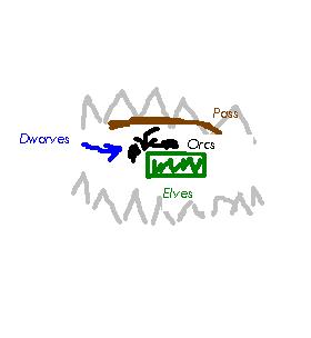 I'll get us to the base of the track leading up to the Eastern Gate . . . if you don't mind I'll invent a small troop of Dwarven guards sent down in response to Brand's arrow . . . they should be able to hold off any Orc still following behind.