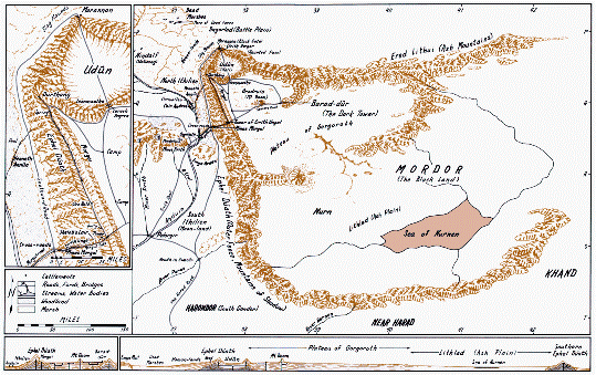 Sounds good. I am not a World Cup fan myself but understand it can be quite addictive! When you do go online tomorrow, could I borrow your knowledge of geography and maps, which has to be better than mine? Am I right in assuming that most of the plantations were in south Núrn near the Sea? Yes, I know it's salt water and not a real source of irrigation, but somehow I pictured them down there. What would be a reasonable direction for the refugees to go if they were aiming for a part of Mordor that would have fewer inhabitants and yet a location where the land would still be arable if proper measures are taken re water conservation, etc. ? My first thought was slightly north. Would the southern fringes of the Plain of Gorgoroth be arable (the part that is slightly above where the mountains curve in--see pages 92-93 of Fonstad)? This is about 175 miles south of Mount Doom, I think. I have no personal knowledge of volcanos (unlike hurricanes), but from reading about St. Helen's it looks like the worst ash flow extended about 20 miles out from the mountain, the mudflows went out about 35 miles, and major damage was recorded in the rivers as far as 75 miles away. Presumably, Mount Doom is still giving off an occasional puff by the 6th year, 4th Age but nothing worse than that (much like St. Helen's in the 1980s when the dome began to reform). I am assuming that, once Sauron died, there was a slight improvement in the climate (just as is described with the Shire) and rainfall would have been slightly more plentiful. From what I've read, ash and soot is actually not a bad thing for agriculture since it helps to conserve water. Is this a realistic location for the new village, or would another work better? You don't by any chance know of an online map of Mordor/Núrn? Durelin, The list looks great! Let me eyeball it further and give my reaction and any ideas later tonight.