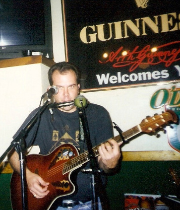 Here's a picture of me doing the 'Bob Dylan' thing at a local pub. Hmmm...no, actually, it was more likely a blues number (perhaps John Mayall's Room to Move), as I'm playing the harp through a Sure Green Bullet (the round, green mic to the right in the pic), which, when fed through an old tube amp, gives a wonderfully distorted, fuzzy sound.