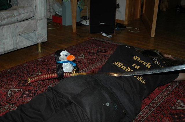 After a long day traveling way north with his dear enemy, a barrow-downer had been violently murdered! He was walking to the music-station to put on something nice when suddenly an innocent looking backstabber attacked him. In the evening on the 24th of September the member Volo was cut down and killed by a penguin. It wasn't the first time that Volo was fighting for his life against animals, but this was certaintly the most tragic attack ever. As he himself comments: "It was really uncomfortable to have a katana thrust through you, I was really angry with the whole mess!". The police suspects that this was done for the sake of revenge and the penguin was brainwashed by a real mastermind. The penguin was taken to a questioning. In the middle of the hearing the lights suddenly went out. When a new bulb was attached the police noticed that the penguin was gone. Later the same evening the same penguin was found murdered, by drowning. Clearly somebody got rid of a witness. All clues are to be left in the Which Downer Am I! -thread!