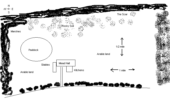 I'm working up some maps. I have the basic landform and house and outbuildings more or less worked up, and am beginning on the layout of the house interior. Next I'll do a broader layout of the lands adjacent as well. I'll post them up as soon as I'm relatively satisfied with them.