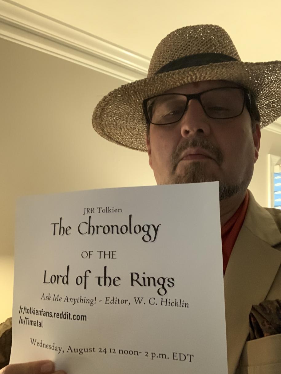 I will be hosting a Reddit "Ask Me Anything" about the Chronology on the subreddit /r/tolkienfans next Wednesday, August 24, between 12 noon and 2 p.m. EDT (UTC-4).