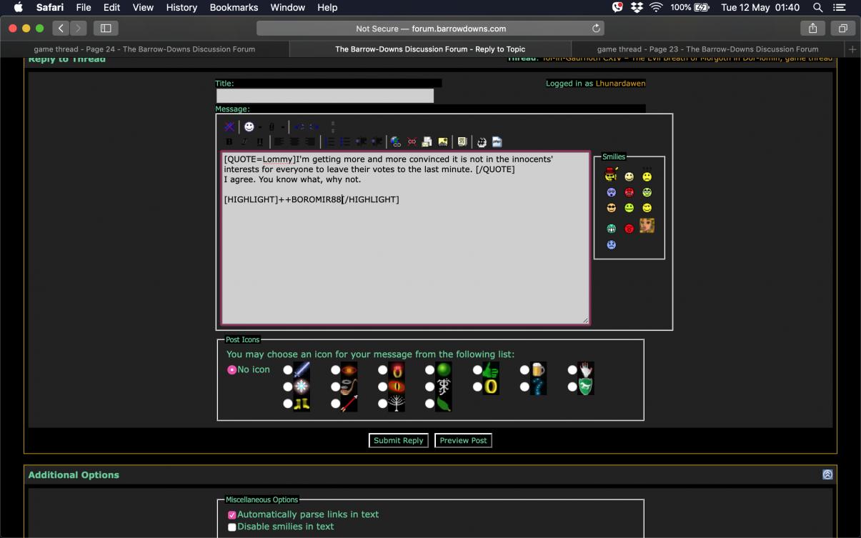 Boro: so all that "in-character" "nightmares" " unconscious" talk & back and forth with G55 ... don't know if you've looked at the dead thread but I was dying to know if it was a hint, a bluff, a .double bluff, or pure nonsense!